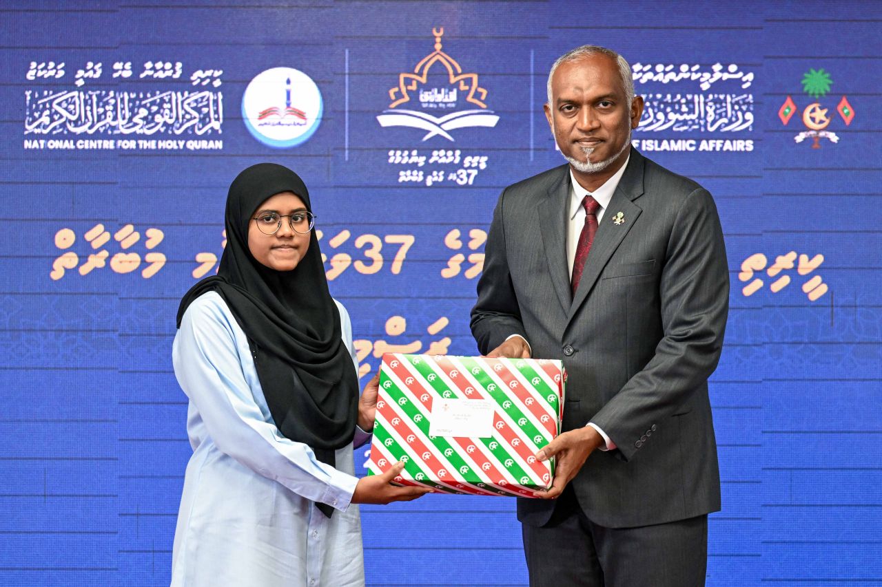 "އާދެ، މި ގައުމުގައި އެންމެ އިސްކަންދޭންޖެހޭނީ އަޅުގަނޑު ހަމަ ދެންމެ ދެންނެވިފަދައިން، ކީރިތި ގުރްއާން ކިޔެވުމަށް. އެންމެ މަތިވެރި އިނާމު ލިބެންޖެހޭނީ ކީރިތި ގުރްއާން ރީތިކޮށް ކިޔެވުމަށް. ކިޔަވައިގެން ލިބޭ ވަނައަށް،" ރައީސް ވިދާޅުވިއެވެ.